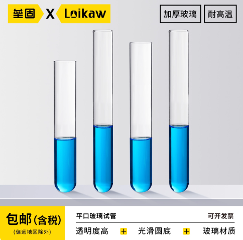 • 壘固 玻璃試管圓底厚料平口耐高溫試管 直徑12/13/15/18/20/25/30mm含硅膠塞刻度試管
